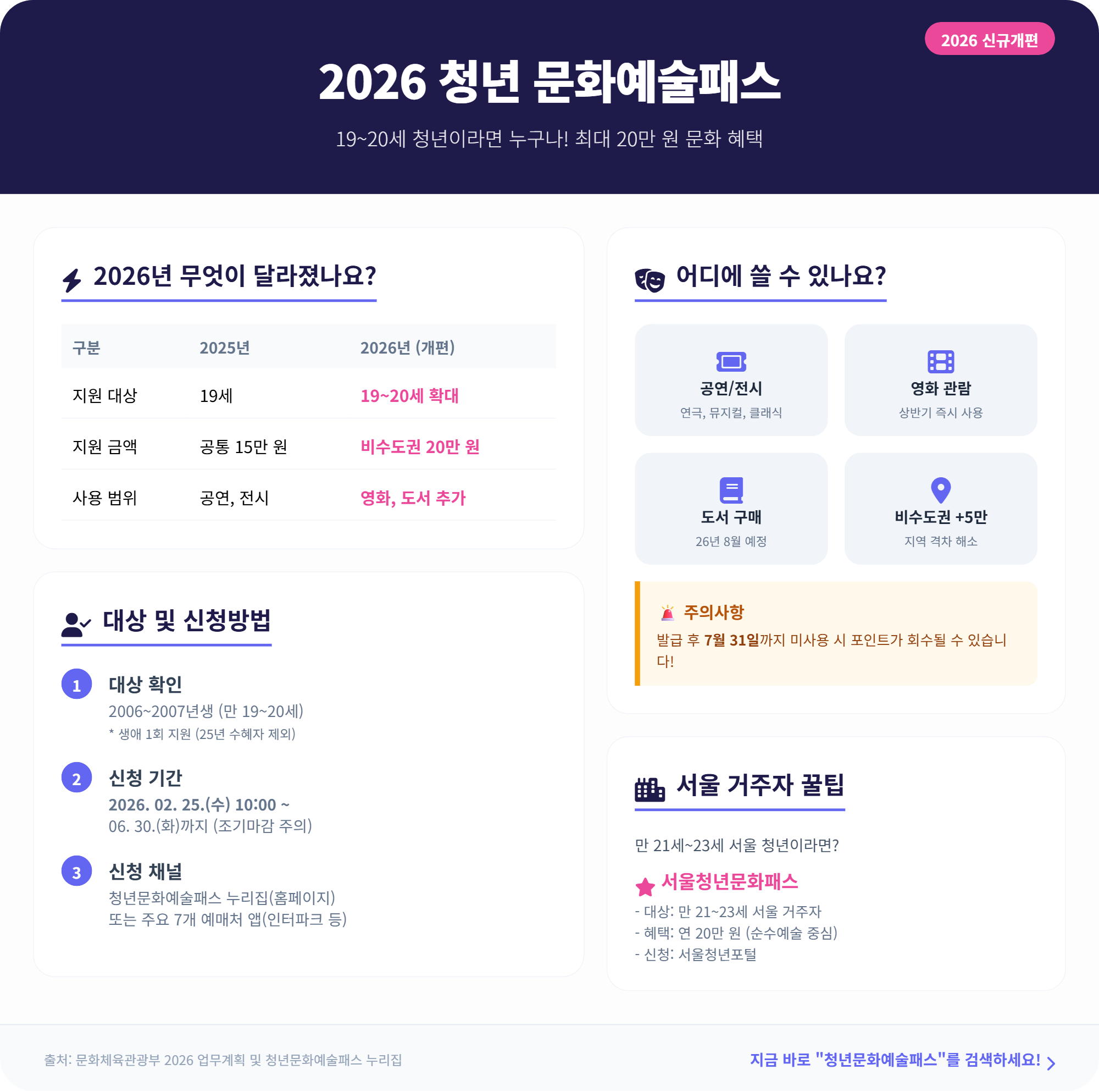 2026년 청년 문화예술패스 지원 확대! 대상부터 영화·도서 사용법까지 총정리